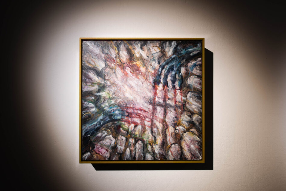 Each of the paintings has concealed text on the back that Heaney has written as part of her attempt to uncover her shadow. She painted these while listening to her accompanying sound installation Shadowscapes (Wilderness Within) (2025).