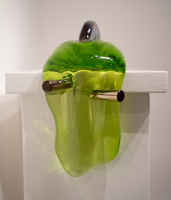 and it oozed out the machine, 2022. Hard-sculpted glass, 27x12x25.5cm.